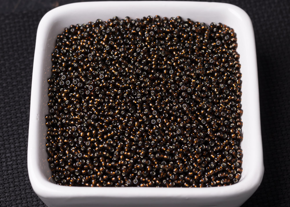 Бисер Чехия круглый 08/0 50 г 17140 прозрачный темно-коричневый с серебряным прокрасом