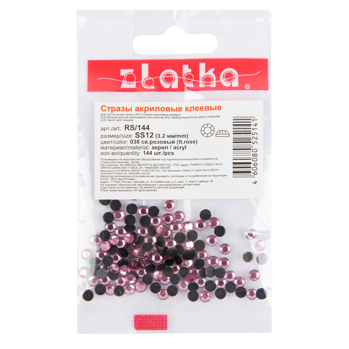 Страз клеевой " Zlatka" RS/ 144 SS12 3 - 3. 2 мм акрил 144 шт в пакете с еврослотом 023 сиреневый ( amethyst)